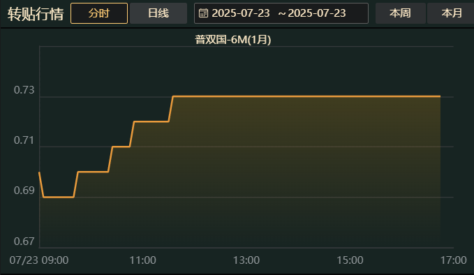 7月首个交易日,票据利率小幅低开,12月到期国股银票低开3BP至1.16%,明年1月到期票据少量成交于1.05%附近。随后年内到期票据和跨年票据利率走势分化,年内到期票据利率基本横盘窄幅波动,明年1月到期票据利率则持续下行。进入下旬,年内到期和跨年到期票据利率开始同步,在经历7月22日大幅下行后,今日(7月23日),票据利率止跌反弹,明年1月到期国股银票转贴现利率最终上升1BP至0.73%,盘中一度跌破0.70%。